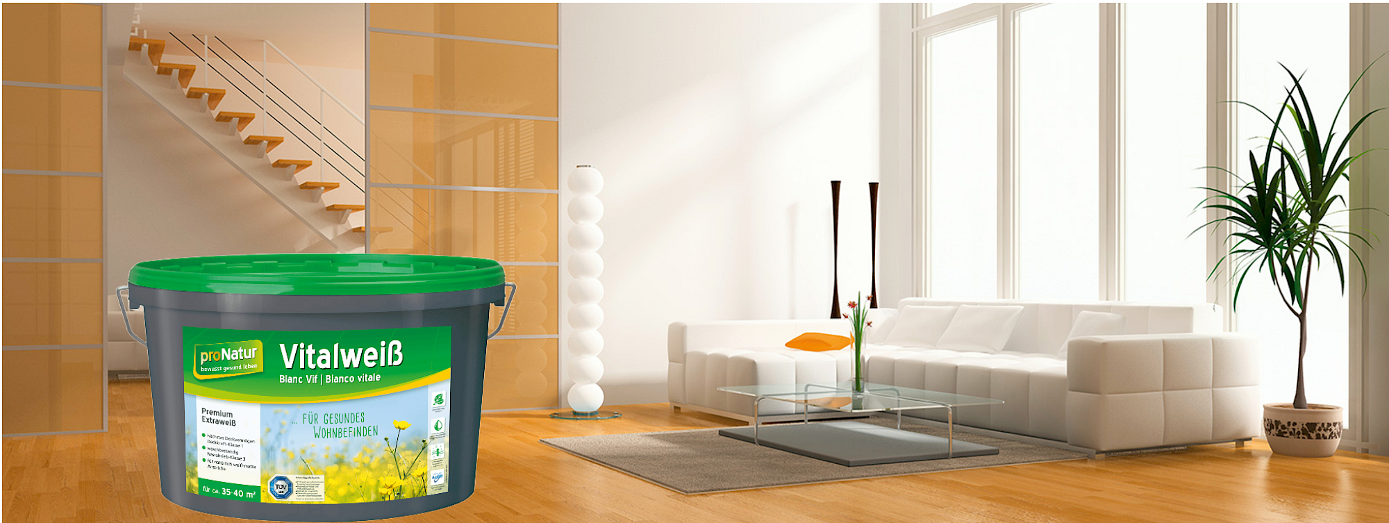 So einfach geht gesundes und nachhaltiges Wohnfühlen – hochwirksame Bestandteile auf pflanzlicher Basis kleiden jeden Raum in ein warmes Weiß. Vorbei sind die Zeiten, in denen zwischen satten Farben und umweltverträglichen Produkten entschieden werden musste: pronatur Vitalweiß ist eine moderne Premium-Naturfarbe, die leicht zu verarbeiten ist und dabei bestens deckt.